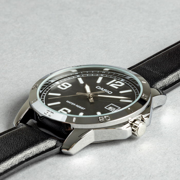 【並行輸入品】【10年保証】【日本未発売】CASIO カシオ スタンダード メンズ MTP-V004L-1B 腕時計 レディース キッズ 子供 男の子 チープカシオ チプカシ アナログ 日付 シルバー ブラック 黒 レザー 革ベルト 海外モデル 送料無料